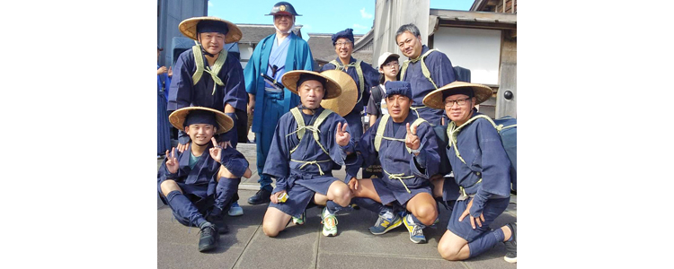 当日の朝、集合場所で受け付けの方に段取りを尋ねると、「ライオンズの方はもう来ていますよ。男女別に部屋が分かれていますから奥で着替えてください」と服を渡された。着替え?と不思議に思って控室をのぞくと、既にメンバーの何人かが時代劇に出てくるような人足姿になっているではないか。「ええ~? 聞いてないよ」と渡辺晃三会長に問うと、「私が申しこんでおきました。どうせやるならこの方が面白いでしょ」と、軽い調子で流されてしまった。優しくてウィットに富んだ会長らしい。「本物みたいだ、似合っている」、「いや、お前の方がもっともらしいぞ」。持ち上げたり下げたりして、互いの姿に笑い合った。