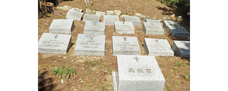 御番所橋を過ぎ、山道を登った先の中山峠の茶屋跡で、最初の水分補給をした。この奥の木立の丘に、長方形の白い石板がいくつも埋めてある。キリシタン塚だ。島原の乱で神経をとがらせた幕府の命令で、この佐渡でもキリシタン狩りが行われ、信者と判明した人は即刻首をはねられたそうだ。ここが処刑場だったのだろうと聞かされた。キリシタン塚を見るのは初めてのことで、時代の潮流に翻弄(ほんろう)された人たちに哀れを感じずにはおれなかった。私は目をつむり静かに手を合わせた。