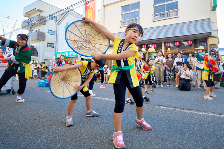 開始直後の時間帯は保育園や幼稚園など子どもの団体が多く、ほほ笑ましい踊りが続き、次第に見応えのある熟練の踊りを舞うグループが増えてくる。沿道には県内外から多くの人が詰めかけ、目の前を通り過ぎる踊り手らの「やっしょー、まかしょ」の声に合わせて手拍子を送っていた。