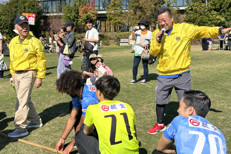 長泉ライオンズクラブ(山田啓介会長/17人)は10月28日、長泉町健康づくりセンター(ウェルピアながいずみ)の芝生広場で、幼児から小学生を対象とした昭和の遊び体験イベント「第8回ライオンキッズデー」を開催した。青少年健全育成活動の一環として始めた、親子で楽しめるこの事業は、今では長泉町の名物イベントになっている。