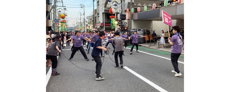 2004年には川之江市、伊予三島市、土居町、新宮村が合併されたのを機に、「伊予三島市のカミンバ」から「四国中央市のカミンバ」としてリニューアル。歌詞と共に曲調もラップ調に変え、踊りのステップも曲に合わせて作り変えました。コロナ禍中は3年間、みなと祭でのパフォーマンスを休止しましたが、2023年にようやく再開されたみなと祭には三島高校ダンス部や企業連など150人以上が参加して、にぎやかに街を練り歩きました。今ではカミンバは皆で祭りを盛り上げる必須アイテムとなり、次回以降への更なる飛躍が期待されています。