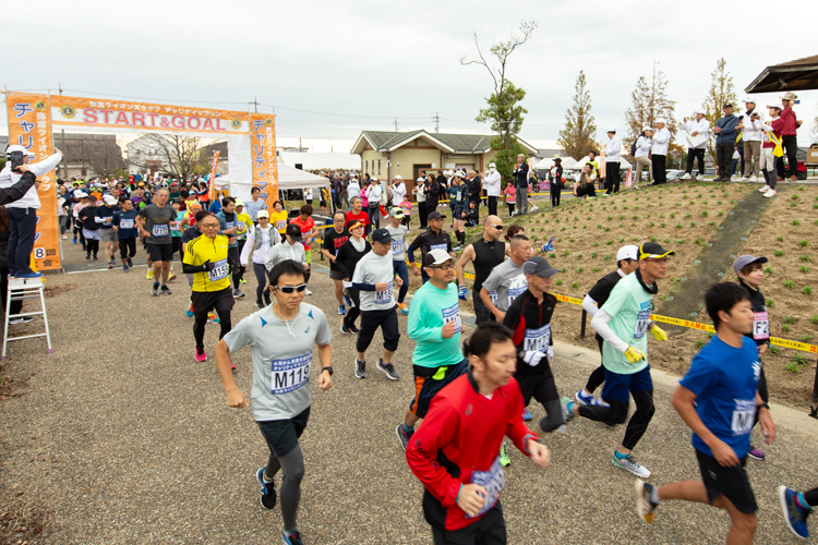 弥富ライオンズクラブのチャリティイベントと言えば、以前はカラオケ大会が恒例で、収益は各年度の会長方針に沿って寄付していた。しかし9年前、新たなチャリティ企画を模索していた当時の伊藤公一会長が、ランニング人気の高まりを受けてマラソン大会の案を打ち出した。クラブメンバーの中に、国内外のトレイルランニング大会で活躍する獣医師の平林弘行さんがいたことから、その経験とネットワークを生かして大会を企画。チャリティの目的は小児がん支援とした。伊藤元会長は以前、同じ愛知県の一宮ライオンズクラブによる小児がん支援チャリティコンサートでゴールドリボンを知り、その活動に興味を抱いていた。クラブにとっては初めての取り組みだったが、2014年11月に開いた第1回大会には約250人のランナーが参加した。