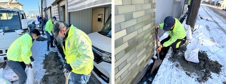 1月14日、富山県射水市で活動する新湊ライオンズクラブと小杉ライオンズクラブは、市社会福祉協議会からの要請を受け、災害ボランティア活動を実施。新湊から16人、小杉からは12人の会員が参加した。両クラブは射水市社協と災害協定を締結しており、今回依頼があったのは、液状化による被害を受けた射水市港町(新湊)での土砂撤去作業。この地区では側溝が液状化した粘土質の泥に埋め尽くされており、重機が使えないために人力で復旧するしかない状況にあった。