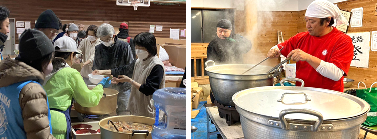 1月23~28日、全国各地のライオンズクラブから被災地支援に駆けつけたメンバーが、石川県能登町の避難所などで合同で炊き出しを行った。