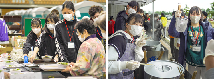 炊き出しを行ったのは避難所になっている松波中学校、小木中学校、鵜川小学校の他、能登町役場や宇出津地区の商店街などで、中華丼やすき焼きどん、焼きうどん、焼きそば、グリーンカレー、たい焼きなどを提供。静岡おでんや山形の玉こんにゃくなどのご当地メニューも振る舞われた。食事は避難所に身を寄せる人の他、在宅避難者にも配られ、温かい食事を求めて各所でたくさんの人が列を作った。また、近隣の自主避難所や宇出津病院の医療スタッフへのデリバリーも行われた。