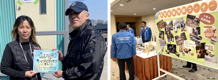 鶴岡ライオンズクラブでは334-D地区(富山県・石川県・福井県)の協力を得て、能登のイカ魚醤「いしり」を使ったラーメンやポン酢、日本酒、焼酎、乾燥シイタケ、餅、あめなど総額約50万円を超える物産品を仕入れた。今後は332-E地区(山形県)5リジョン2ゾーン全体に協力を呼びかけて販売することにしている。