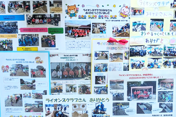 年々クラブメンバーの平均年齢が上がってきているのと比例するように作業途中の休憩時間も増え、翌週の例会では湿布の匂いが漂っている。しかし、月曜日に登園してきた子どもたちが笑顔で我先にと砂山へ駆け上がる様子が地元ケーブルテレビで放映されると、それを見て「また来年もがんばらなくては」と腰をたたきながら誓うのだ。毎年子どもたちからはお礼状が贈られてきて、元気をもらっている。
