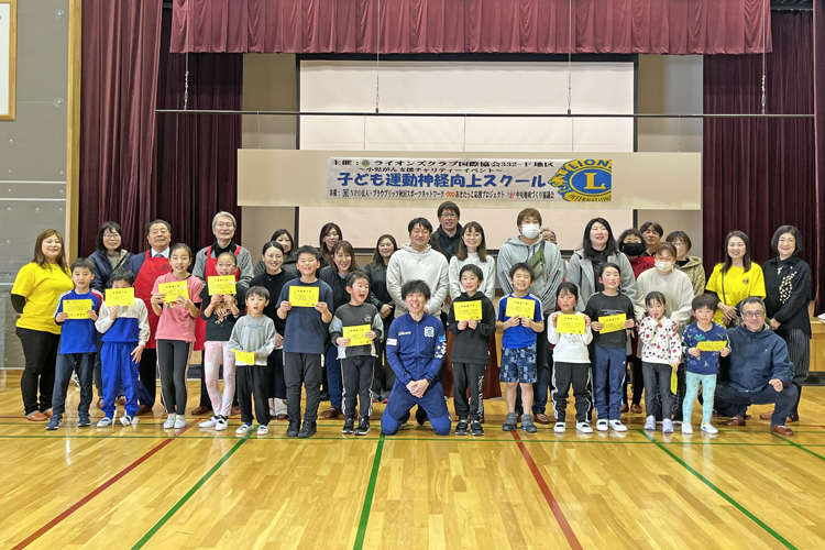 講師には、NPO法人ブラウブリッツ秋田スポーツネットワークの佐藤吏代表を招いた。秋田県にあるサッカーJ2チーム・ブラウブリッツ秋田がスポーツで秋田に貢献するために運営している法人で、子どもたちにサッカーだけでなくさまざまな競技の機会を提供している。スクールでは「子供の運動神経の育てかた」をテーマに、前半は保護者向けに座学を、後半は子どもたちにバランスボールなどを使って遊びながら体全体を使う動きを体験してもらった。コロナ禍中や冬休み中には思う存分運動することがなかったであろう子どもたちは、ワクワク感でいっぱいの目をキラキラときらめかせていた。このイベントで知り合って友達の輪を広げた子もいたようだ。我々ライオンズメンバーや大人たちは子どもたちに無限の可能性を感じ、その笑顔から大きなパワーをもらった。