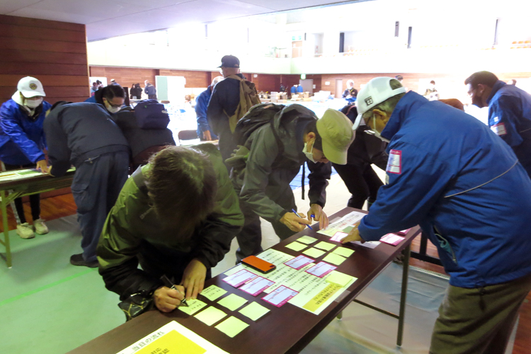 災害ボランティアセンターで活動を始めた当初の中村会長の動きはこうだ。朝は8時半から運営スタッフの全体ミーティングに参加し、9時からボランティアの受け付け、10時から10時半にかけて資材を配ってボランティアを送り出す。その後、いったんセンターを離れて病院の仕事をこなし、ボランティアが帰還する昼前に戻って資材の片付けやお茶出し。13時に再びボランティアを送り出して、その日の任務は終了となる。