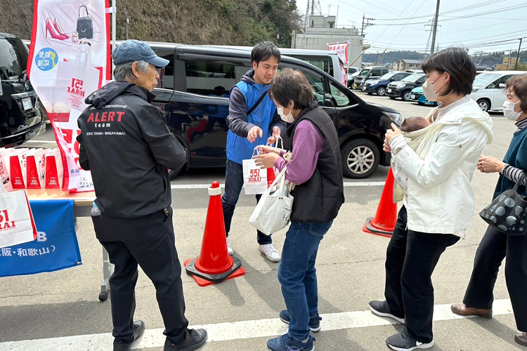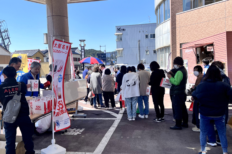 そして、第1弾のもう一つの「プラスアルファ」は、大阪名物として全国的に有名な「551HORAI豚まん」の提供。守口ライオンズクラブが購入費用を負担し、輪島と穴水でチルド豚まん2個入りセットをそれぞれ250セット、合計1000個を配布して、各家庭で温めて食べてもらうこととした。551豚まんの知名度はとても高く、用意した分が飛ぶようになくなっていった。