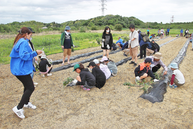 潮来ライオンズクラブ(岩本富雄会長/102人)は5月12日、友好クラブである東京世田谷ライオンズクラブ、東京三軒茶屋ライオンズクラブと共に、合同食育推進活動2024を実施した。東京の子どもたちを招いて、農業経験者であるメンバーの丁寧な指導の下、水田でコシヒカリの苗を、畑ではサツマイモの苗を植えるこの事業には、3クラブから126人が参加した。
