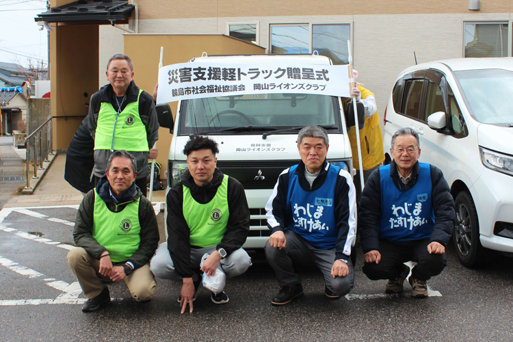 3月23、24日にはクラブメンバー3人が「EST JAPAN」による能登半島地震災害支援炊き出しに参加し、焼餃子・水餃子600食と岡山銘菓の大手まんぢゅう800個を提供した。更に5月12日には、珠洲市生涯学習センターにてカレーライスと餃子入りたまごスープの炊き出しを行い、多くの方に喜んでいただいた。⽀援はこれからもまだまだ必要だと思う。岡⼭ライオンズクラブ一丸となってサポートを続けていきたい。