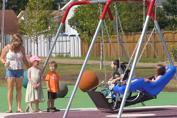 カナダ西部に位置し、小さな町ならではの魅力に富んだサスカチュワン州マーテンズビル。この町のライオンズは地域社会のニーズを把握し、障がいのある子どもにも利用しやすく、環境に配慮した遊び場「ライオンズ・モビリティーパーク」を造るという使命に乗り出した。