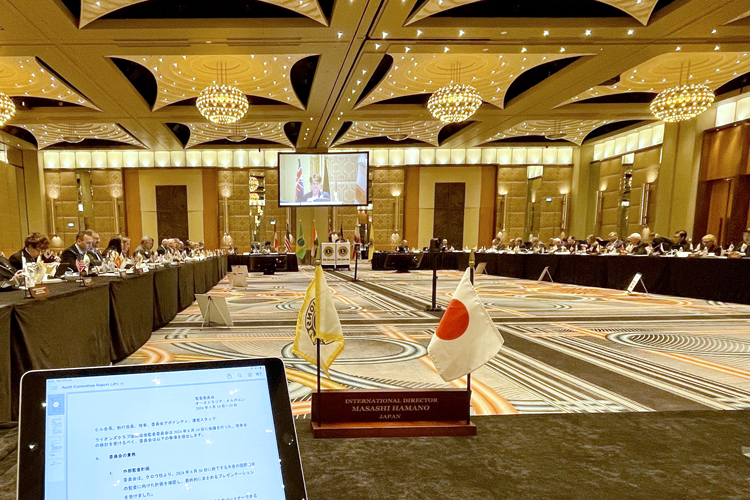国際理事会の初日は、理事会構成員と同伴者が一堂に会する開会式があり、国際会長の方針や報告、アワードの授与などのセレモニーが行われ、その日の午後から各委員会に分かれて協議が始まります。2日目、3日目は終日委員会で協議し、審議事項や報告事項をまとめます。その間に他の委員会との合同会議や執行役員の訪問も受けます。各委員会で理事会へ上程する事項が決まると、理事全員にメールでその内容が配布され、その日の夜に他の委員会の協議事項等の資料に目を通しておきます。この夜に各委員会から届く英語のレポートを読むのが大変です。事前に理事会方針書も読んでおかなければ整合性が確認出来ず質問が出来ませんし、多岐にわたる分野の知識が必要とされます。そして、寝不足で迎えた翌日、最終日の午前中に全ての理事が集まる理事会の審議会に臨み、他の委員会の内容について疑問があれば質問します。午後からは全ての委員会の審議事項を決議して、閉会式となります。その決議や報告により理事会方針書が変更され、国際大会の総会に諮る審議事項や報告事項になります。