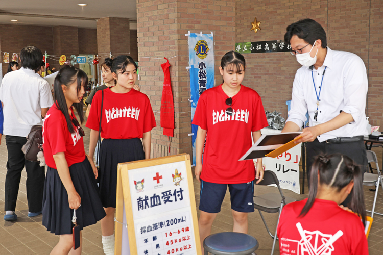 そこで今年度は「つなげ、思いやりリレー」というタイトルを掲げ、献血活動やセミナーをリレー形式で行う企画で参加を呼びかけると、全ての高校から前向きな回答をもらうことが出来た。その背景にあるのは、今年1月1日に発生した能登半島地震だ。今なお多くの被災者が苦しむ姿や、相次ぐ献血中止で深刻な血液不足となっている事実を目の当たりにし、自分たちも何か支援をしたい、命を救うために行動したいという気持ちが芽生え、意識に変化をもたらしたものと思われる。地元の高校の仲間たちが手を取り合い、たすきリレーで気持ちを一つにして行動するというコンセプトが、大きな一歩につながった。