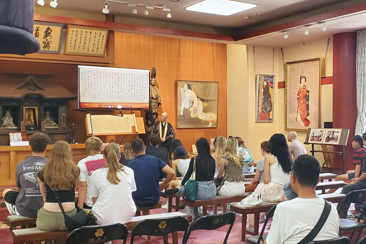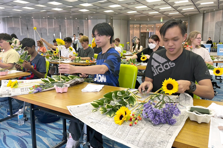 最初の訪問地は、広島。プログラムが目指す世界平和の観点から、唯一の被爆国としての日本を知ってもらおうと、平和記念資料館と平和記念公園を訪れ、ユース全員で折った千羽鶴を原爆の子の像に捧げた。京都では、池坊会館の伊藤礼水教授の指導を受けていけばなを体験し、用意された花材を使ってそれぞれに個性豊かな花を生けた。その中で、ウクライナとロシアの戦争による影響かヒマワリの花の使用を拒むユースがいた。沈んだ表情を見せるユースに、キャンプの企画運営を担ったYCE委員会のメンバーは現在の国際情勢の厳しい現実を垣間見た。