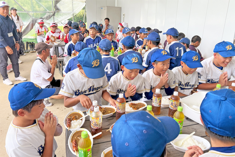 翌日は、四条畷(しじょうなわて)市内のグラウンドで野球教室を開催した。指導に当たったのは、阪神タイガースOBで現在は大阪JOINUSライオンズクラブのメンバーでもある西田直斗さん、一二三慎太さんを始めとする4人。子どもたちにとっては、かけがえのない貴重な経験になったに違いない。昼前には後発組がグラウンドに到着し、メンバー手作りのカレーライスを皆でおいしく味わった。しっかりとあいさつをする礼儀正しい子どもたちばかりだ。午後の部の野球教室が終わると、先発組は帰路に就き、後発組は大阪京セラドームでの観戦へ。この日の試合も阪神がヤクルトに勝利。阪神ファンが増えることを期待しつつ、子どもたちに野球をもっともっと好きになってほしいと願っている。
