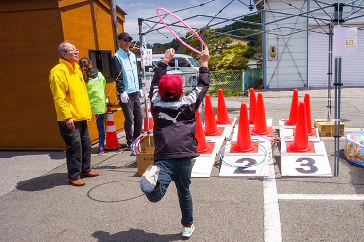 4月29日、被災された方々へ元気と勇気をお届けしようと、332-B地区内の会員74人が参加して、復興支援イベント「ライオン屋台」を開催した。大きな被害を受けた三陸町綾里(りょうり)の会場には、大型のエアー遊具を設置し、焼きそば、焼き鳥、豚汁などの屋台と、射的やヨーヨー釣り、ジャンボ輪投げの縁日を出店。274人の来場があり、たくさんの笑顔を見ることが出来た。
