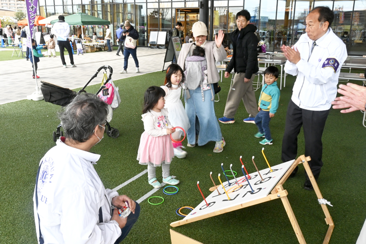 自由対局で子どもたちの相手を務めるのは、クラブメンバーや大学生ボランティア。多面指しで大学生と手合わせした子は、「強すぎる!」と驚きの声を上げていた。輪投げコーナーは小さな子どもたちに大人気で、親子の楽しそうな笑い声が響いた。