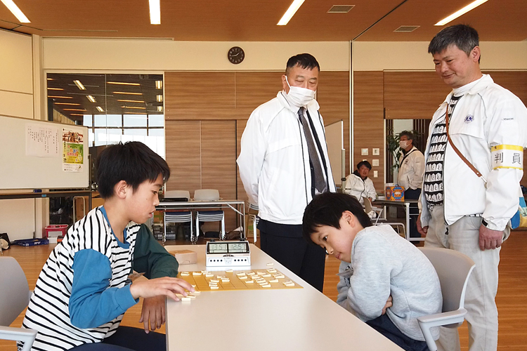 予選リーグは「よろしくお願いします!」の元気な声と共にスタート。審判員を務める大学生ボランティア3人とクラブメンバーが見守る中、会場には駒を打つ音が響き、子どもたちは真剣な表情で盤面を見つめていた。