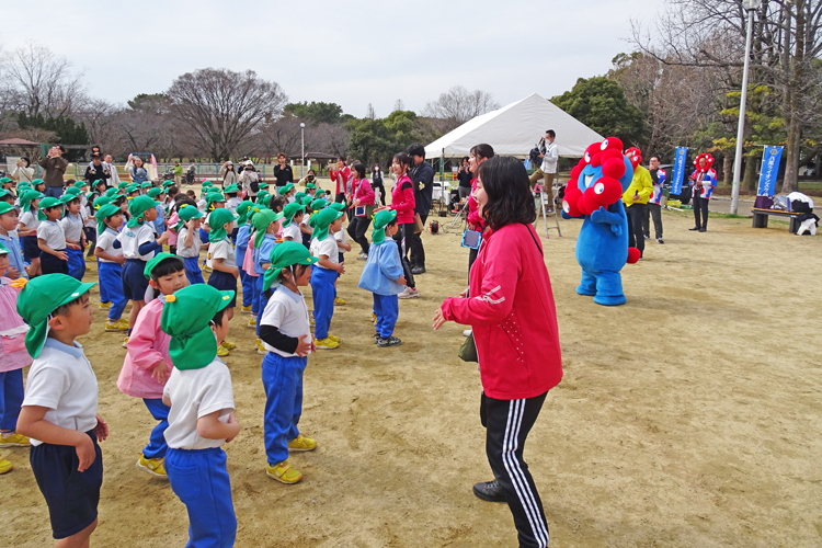 もくもく元気広場に展示されたパトカーや白バイ、消防車、災害用車両等との記念撮影は、子どもたちに大人気。それ以上に盛り上がったのは、ミャクミャクと園児による「ミャクミャクダンス」だ。元気いっぱいのダンスに参加者は大喜びで、楽しいイベントとなった。