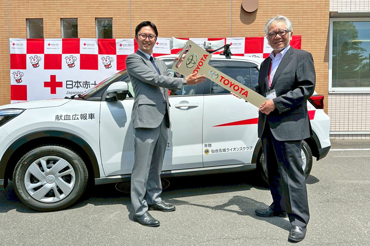 仙台五城ライオンズクラブ(42人)はクラブ結成60周年記念事業の一環として、宮城県赤十字血液センターに広報車1台を寄贈し、7月24日に納車式を行った。