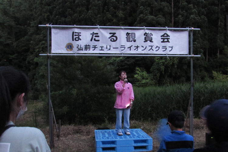 弘前チェリー ライオンズクラブ(45人)は環境保全と青少年健全育成を目的として、去る7月12日に「ほたる観賞会」を開催した。会場は弘前市小沢地区にある「ホタル池」で、昨年初めて取り組んだ企画が好評を博したことから2回目の開催となった。昨年に続き多くの参加者を迎え、地域に根差した活動として大きな広がりを見せている。