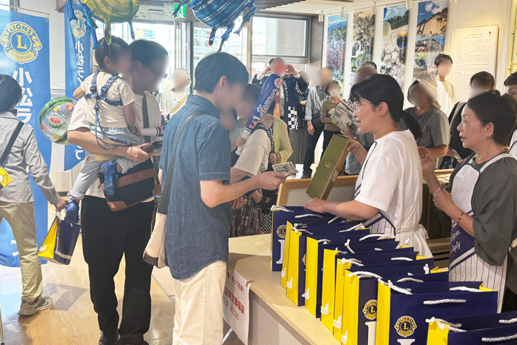 小松ライオンズクラブ(鹿田稔夫会長/63人)は334-D地区の能登震災復興支援の事業と協働し、「買って応援!売って応援!~能登のいい物詰合せ~能登復興支援福袋」と銘打ち「福袋」を販売して能登の復興を応援した。輪島ライオンズクラブを通じて、小松ライオンズクラブのメンバーが能登の事業者から食品や工芸品を購入することによって、能登の事業者に対する経済支援を行い、またその物産品を購入額の半額でまつりの来場者に販売。能登の物産品を届けることによって、全国的に薄れつつある震災の記憶を130㎞以上離れた小松の地で共有することが、今後の支援につながると考えた。