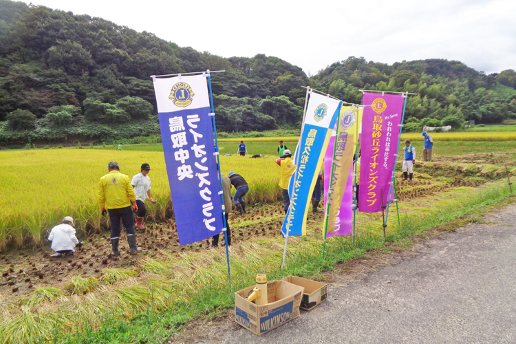 9月27日、鳥取市内の6クラブ(鳥取、鳥取中央、鳥取いなば、鳥取久松、鳥取千代、鳥取砂丘=7リジョン1ゾーン)は合同稲刈り事業を行った。昨今の全国的な米価格の高騰により、こども食堂や福祉施設等は食事の提供に支障をきたしていると聞く。わずかなことでも力になれたらという思い、そして、6クラブが協力し合いそのつながりを更に深めることが、地域でより良い奉仕をという考えに基づいて計画実施したものだ。