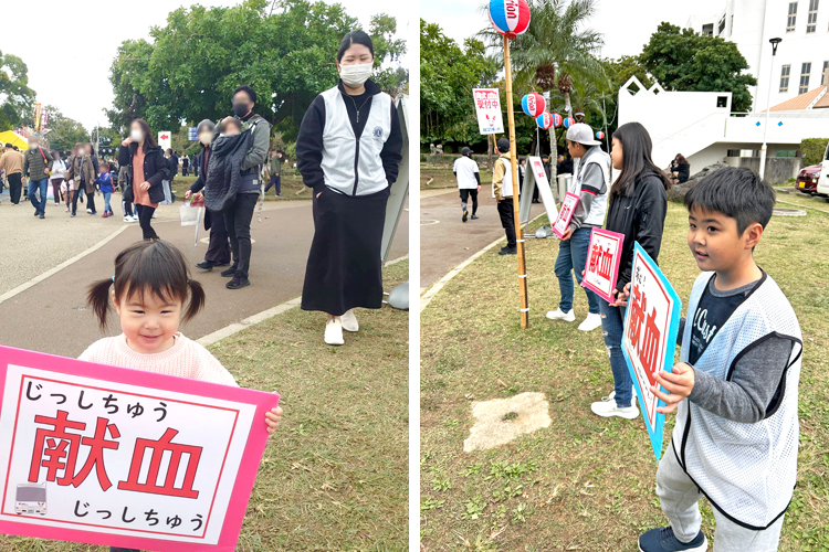 沖縄県は、子どもの貧困率が全国的にも高い水準にある一方で、献血率は低い傾向にあるとされている。特に冬季は、寒さによる体調不良や感染症の流行、年末年始の生活リズムの変化などにより献血者数が減少しやすく、全国的にも血液が不足しがちな時期である。医療現場では安定した血液確保が常に求められており、この時期における献血活動の意義は非常に大きい。将来を担う子どもたちの命を守る医療を支えるためにも、地域全体で献血への理解と協力を深めていく必要があるとの思いから、25年に続き26年も本活動を継続して実施した。
