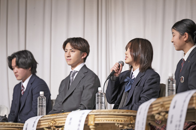 本事業の大きな柱である学生ディスカッションでは、中学生2人、高校生3人、大学生3人の8人が登壇した。登壇者は基本的には学校推薦で選んだが、自ら直接、立候補した学生も多く、関心の高さがうかがえた。