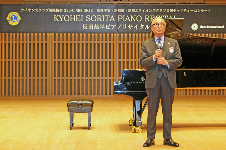 ライオンズクラブが奉仕事業を実施する時、重要なことの一つはより多くの人が参加できることだと考える。それは一体何だろうかと半年間いろいろと検討し、著名アーティストを招いてのチャリティーコンサートを企画した。そして11月18日、初秋の京都・北山の京都コンサートホールで「チャリティーコンサート 反田恭平ピアノリサイタル」を開催した。この事業は「United by Service ——奉仕でひとつになる——」を今期のスローガンとした3リジョン1ゾーン(京都平安、京都橘、京都北各ライオンズクラブ)の合同事業である。