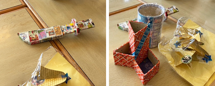 でき上がった作品は、バザーなどで販売もしているが、目的はあくまで利用者の福祉であり、営利のために数をたくさん作成するのではなく、「利用者が楽しいと思う範囲で、楽しいと思うことをしてもらう」ことが徹底されていた。利用者は明るく、楽しく作業を進めており、使用済みの切手が違う形で喜びを生んでいると感じた。