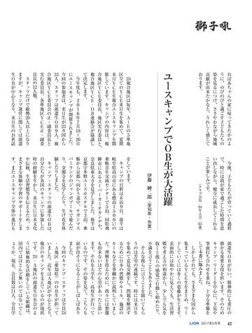 - 生 O B が 中 心 と な り 、 来 日 生 の お 世 話 す 。 ま た ユ ー ス キ ャ ン プ 全 体 の 進 行 も ょ う か 。 現 在 、 会 員 数 は 71 人 。 全 員 学