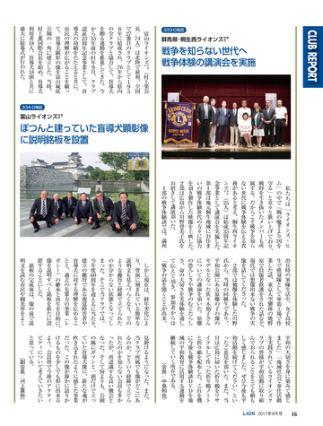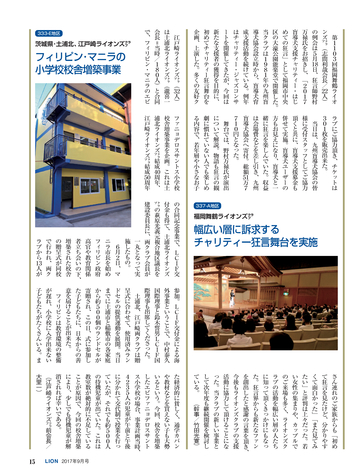 取材や投稿によるクラブの活動リポート、ライオンズ の活動に関わるテーマを掘り下げる特集、会員のエッセ ーや提言など、基本的にこれまで通りの誌面を継続しま す。
