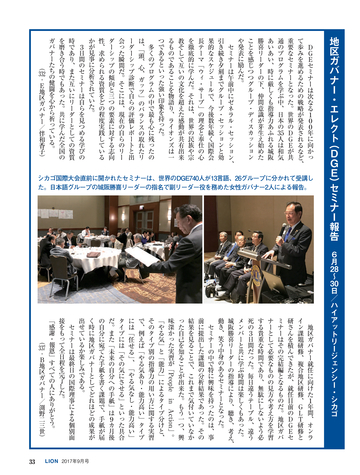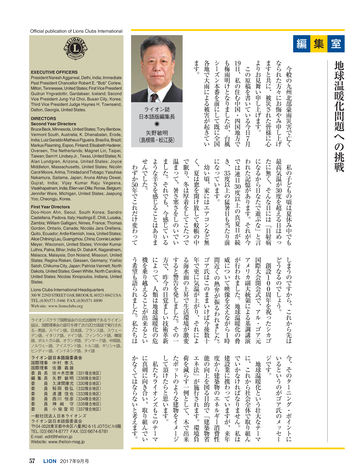 ライオン誌日本語版委員会 国際理事 中 村 泰 久 国際理事 佐 藤 義 雄 委 員 長 佐々木忠康(331複合地区) 編 集 長 矢 野 敏 明(336複合地区) 委 員 久津間康允(330複合地区) 委 員 稲 岡 敬 弘(332複合地区) 委 員 渡 邉 信 也(333複合地区) 委 員 西 川 恒 彦(334複合地区) 委 員 神 﨑 守(335複合地区) 委 員 小 柴 登 司(337複合地区) 一般社団法人日本ライオンズ ライオン誌日本語版委員会 〒 104-0028東京都中央区八重洲2-6-15 JOTOビル9階 TEL. (03) 6674-8777 FAX. (03) 6674-8781 E-mail. edit@thelion.jp Website: www.thelion-mag.jp