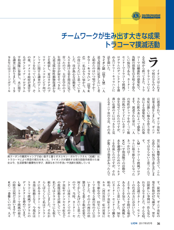 になり、重労働をしなくなるにつれて、糖尿 病が世界的に危機をもたらしています。私の 母国インドがその代表例で、裕福とはほど遠 い国ですが「世界の糖尿病の中心地」として 知られ、5千万人という膨大な数の人々が2 型糖尿病に苦しんでいます。アメリカの統計 も同様に暗く、ニューヨークでは果物や野菜 が簡単に手に入るにもかかわらず、糖尿病を 患う成人は現在推定80万人、つまり8人に1 人に上ります。アメリカ全土の状況は更に厳 しく、 疾病管理予防センターの予測では、 アメリカで生まれる子どもの3人に1人がい ずれ糖尿病を発症することになります。 社会が被る損害は甚大です。糖尿病は心疾 患、脳卒中、腎障害、神経障害を招くことが あり、失明の原因にもなるからです。 ライオンズクラブ国際協会は、糖尿病の増 この病気の予防と治療に尽力していくことに なるでしょう。7月にシカゴで行われた第 100回国際大会では、糖尿病を減らすという 新たな誓いを正式に発表しました。ヘレン・ ケラーは1925年の国際大会でライオンズに 盲人の騎士となるよう訴えましたが、シカゴ 国際大会では彼女の姪孫ケラー・ジョンソン ‐ トンプソンが大伯母の講演を再現し、 この 新たな課題に挑むようライオンズに呼び掛け ました。 「糖尿病に取り組むことで、これからも盲人