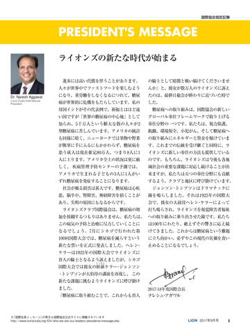 ※ 「国際会長メッセージ」 の原文は国際協会公式サイトに掲載されています http://www.lionsclubs.org/EN/who-we-are/our-leaders/presidents-message.php