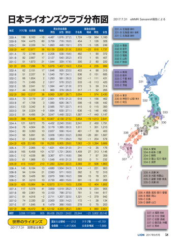 地区 330-A 330-B 330-C 330 計 331-A 331-B 331-C 331 計 332-A 332-B 332-C 332-D 332-E 332-F 332 計 333-A 333-B 333-C 333-D 333-E 333 計 334-A 334-B 334-C 334-D 334-E 334 計 335-A 335-B 335-C 335-D 335 計 336-A 336-B 336-C 336-D 336 計 337-A 337-B 337-C 337-D 337-E 337 計 総計 クラ ブ数 会員数 199 164 84 72 82 51 205 62 51 66 71 56 44 73 47 133 54 81 121 78 80 98 51 77 165 112 61 145 94 95 91 117 69 81 74 57 6,163 4,475 2,339 2,746 2,667 1,873 7,286 2,151 2,337 1,854 2,495 2,041 1,339 3,179 1,706 3,342 2,324 4,495 6,672 4,564 3,393 5,891 2,640 2,065 6,458 4,038 1,966 6,184 3,164 3,426 3,210 5,378 2,901 4,018 2,330 1,845 増減 ー18 60 14 41 17 21 79 17 9 2 2 12 ー6 36 27 3 8 ー9 24 75 35 10 55 16 10 101 86 13 13 21 50 10 41 19 ー2 22 6 男女別会員数 男性 女性(割合) 4,487 3,759 1,893 2,208 2,127 1,544 5,879 1,646 1,540 1,293 1,917 1,594 960 8,950 2,501 1,080 2,585 1,694 3,047 4,432 3,179 2,837 3,938 1,869 1,631 4,737 3,367 1,548 4,680 2,593 2,870 2,730 3,859 2,103 2,711 2,000 1,479 1,676 ( 27.2 ) 716 ( 16.0 ) 446 ( 19.1 ) 2,838 ( 21.9 ) 538 ( 19.6 ) 540 ( 20.2 ) 329 ( 17.6 ) 1,407 ( 19.3 ) 505 ( 23.5 ) 797 ( 34.1 ) 561 ( 30.3 ) 578 ( 23.2 ) 447 ( 21.9 ) 379 ( 28.3 ) 3,267 ( 26.7 ) 678 ( 21.3 ) 626 ( 36.7 ) 757 ( 22.7 ) 630 ( 27.1 ) 1,448 ( 32.2 ) 4,139 ( 27.5 ) 2,240 ( 33.6 ) 1,385 ( 30.3 ) 556 ( 16.4 ) 1,953 ( 33.2 ) 771 ( 29.2 ) 6,905 ( 29.8 ) 434 ( 21.0 ) 1,721 ( 26.6 ) 671 ( 16.6 ) 418 ( 21.3 ) 3,244 ( 22.3 ) 1,504 ( 24.3 ) 571 ( 18.0 ) 556 ( 16.2 ) 480 ( 15.0 ) 3,111 ( 19.5 ) 1,519 ( 28.2 ) 798 ( 27.5 ) 1,307 ( 32.5 ) 330 ( 14.2 ) 366 ( 19.8 ) 4,320 ( 26.2 ) 子会員 1,724 454 375 2,553 462 472 300 1,234 403 836 542 533 373 317 3,004 618 598 415 636 1,587 3,854 2,241 1,511 461 2,068 782 7,063 211 1,459 396 303 2,369 1,124 382 399 301 2,206 1,129 761 1,321 172 278 3,661 家族会員数 増減 男性 ー19 1 ー5 ー23 1 1 2 4 4 0 ー1 ー6 5 ー1 1 1 ー8 0 ー5 ー7 2 1 ー7 ー26 ー1 ー3 27 7 0 31 ー1 3 15 ー5 12 5 3 ー3 ー1 0 4 女性 564 1,160 126 328 126 249 816 1,737 90 65 80 235 88 151 111 113 59 52 156 372 407 220 999 315 685 431 420 314 265 462