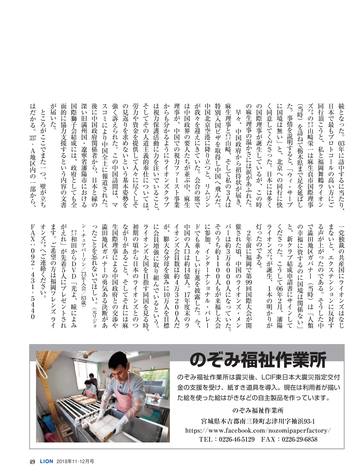 LION MAGAZINE IN JAPAN November.December 2018, Vol.676