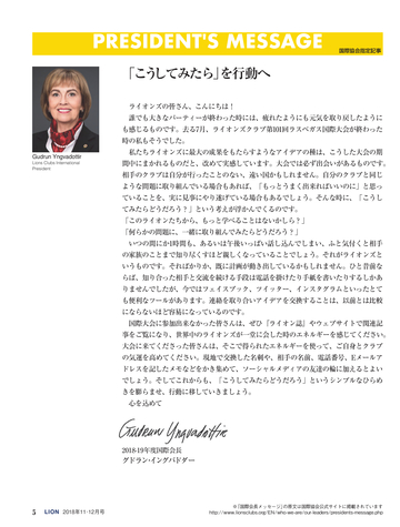 ※ 「国際会長メッセージ」 の原文は国際協会公式サイトに掲載されています http://www.lionsclubs.org/EN/who-we-are/our-leaders/presidents-message.php