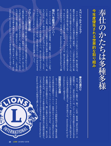- ラ イ オ ン 誌 日 本 語 版 2 0 1 9 年 9 ・ 10 月 号 通 巻 6 8 1 号