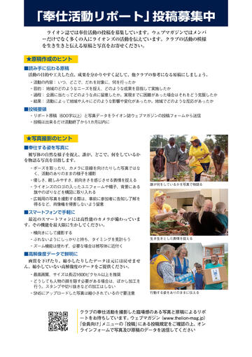 ライオン誌では奉仕活動の投稿を募集しています。ウェブマガジンではメンバ